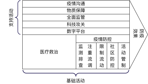 论文的研究成果主要有:从微观动态视角对三省疫情活动进行分类,并借鉴波特价值链理论视角识别出2类疫情管理基础活动和5类疫情管理支持活动;区别于以往侧重政府主体的治理能力、治理模式等应急管理研究,对比分析三省在疫情管理不同阶段的活动特点,总结关键活动之间的关系,进而得出基础活动与支持活动共同作用于防疫效果的疫情管理整体框架;发现中国成功控制疫情的三个独特“情境”:其一中国举国体制强调在应急管理能力不断提升的过程中,对疫情实现动态的、精准又重点的防控,从而快速控制疫情蔓延。其二中国在举国体制的“统”下,各“分”部门按照各自职责分工,发挥各自专业优势,具有独特而强大的组织动员能力。其三中国强大的数字化平台既能发挥监督职能,保证权力在合理范围内发挥疫情防控的最大作用,又能优化各项疫情管理活动的功能,提高资源可及性。