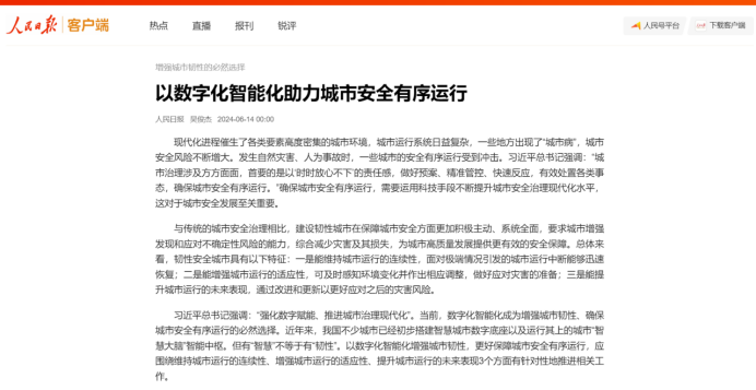 做好应急响应是维持城市连续运行的关键。以数字化智能化增强应急响应能力,可以辅助精准决策,使应急响应更科学。比如,构建可融合历史案例、专家知识、现场信息等跨模态多元信息并进行智能决策的AI模型;构建基于数字孪生技术的城市仿真平台,实现应急决策的推演及优化,保障应急措施的有效性。数字化智能化可以助力组织联动,使应急响应更迅速。比如,建立公共治理平台和数据共享机制,确保应急组织纵向联动、横向协同,实现各部门分工协作,形成应急合力。数字化智能化还可以赋能信息安全,使应急响应更有效。比如,运用虚假信息全网感知和智能过滤技术,减少灾情相关虚假信息传播引起的二次伤害,形成有利于救灾应急的信息环境。