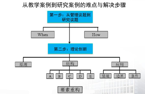 从教学案例到研究案例的难点主要有二点:从管理议题到提炼科学的研究问题教学案例的开发主要从管理实践中提出管理的议题;而研究案例论文的发表更关注如何从个案的管理议题上升到具有普适性的科学研究问题。从理论运用到理论创新。教学案例开发主要体现在运用经典的管理理论解释管理实践活动;而研究案例的论文发表更关注理论的创新。解决教学案例到研究案例开发的难点有如下二个步骤: