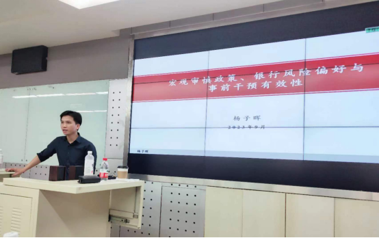 杨子晖教授在报告中分享了他最新的一项研究工作《宏观审慎政策、银行风险偏好与事前干预有效性》。面对美国硅谷银行破产等频频发生的极端风险事件,如何健全宏观审慎政策框架,遏制银行风险偏好的过度上行,已成为现阶段我国金融稳定保障体系亟待解决的重要问题。在此背景下,杨子晖教授的研究工作开创性地从银行风险偏好这一视角出发,对我国宏观审慎政策的事前干预作用展开全面、深入的研究。在得出富有启发意义结论的基础之外,杨子晖教授还提出了完善现代金融监管的政策建议,从而为“守住不发生系统性风险底线”提供有益的参考依据。杨子晖教授与参加融实论坛的师生们进行了深入的学术交流,讨论了研究选题、样本构建、实证设计、机制分析和政策启示等相关问题。本期融实论坛学术报告在热烈讨论的氛围中圆满结束。