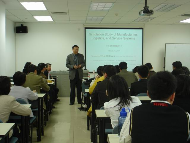 2009年3月25日下午15时,应我院贾国柱教授邀请,日本著名学者、工业工程专家Takakuwa教授在新主楼A949教室为我院师生做了题为“Simulation Study of Manufacturing, Logistics, and Service Systems”的学术报告。