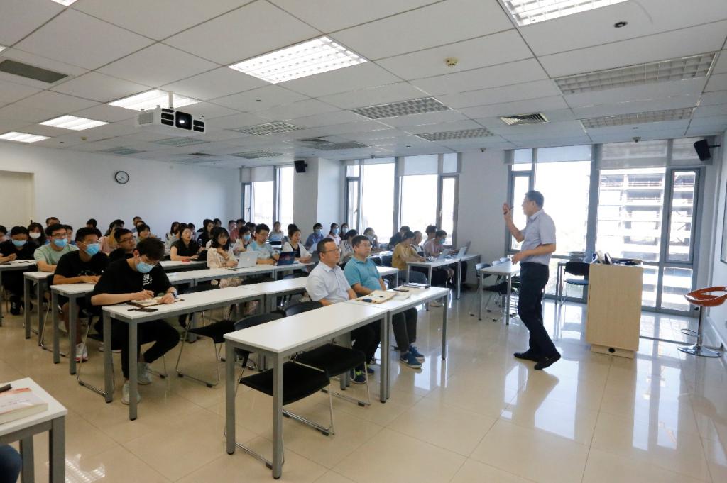 2021年6月3日下午,经济管理学院分党委书记刘志新在新主楼A706教室讲授党史学习教育专题党课。教工支部书记、学生支部支委、学生工作负责人和专职组织员60余人参加学习。