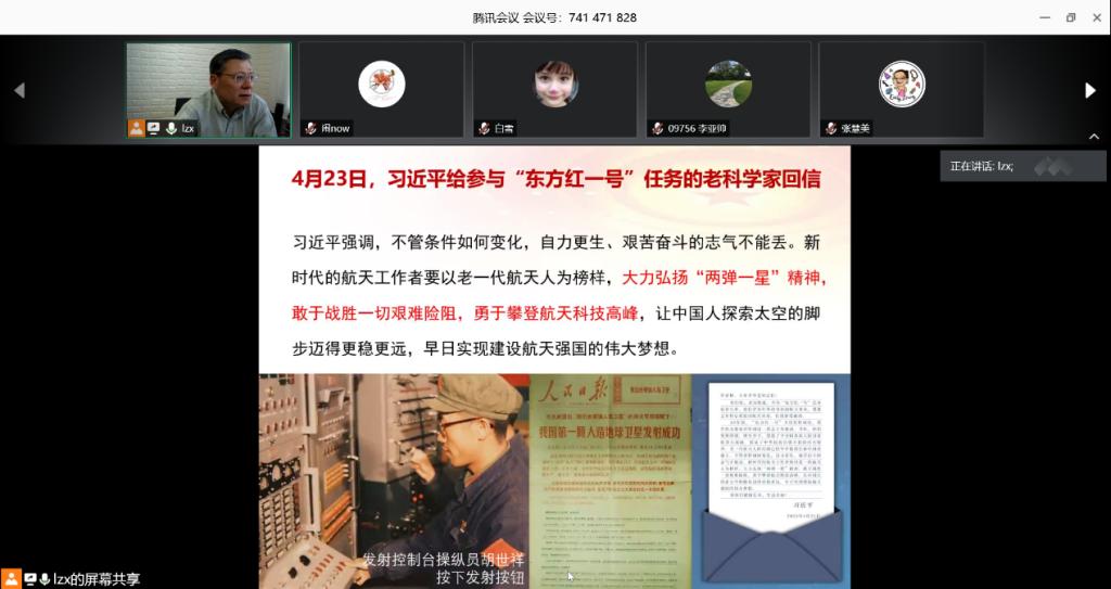 在学习习近平总书记给参与“东方红一号”任务的老科学家回信时,刘志新强调,作为在一所与新中国航天事业同频共振的专业高校工作学习的师生,要始终坚持以习近平新时代中国特色社会主义思想为指引,增强“四个意识”,坚定“四个自信”,做到“两个维护”,自觉以戚发轫院士等老一代航天人为榜样,秉承“两弹一星”精神和“有梦想、有热情、有豪情、有干劲、有勇气、有担当”的“六有”精神,坚持自力更生、艰苦奋斗的作风,坚决战胜新征程中的一切艰难险阻,为实现航天强国梦、实现中华民族伟大复兴的中国梦做出新的更大贡献。