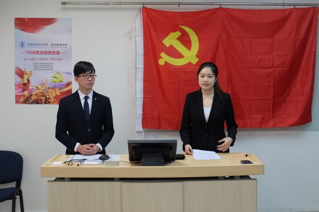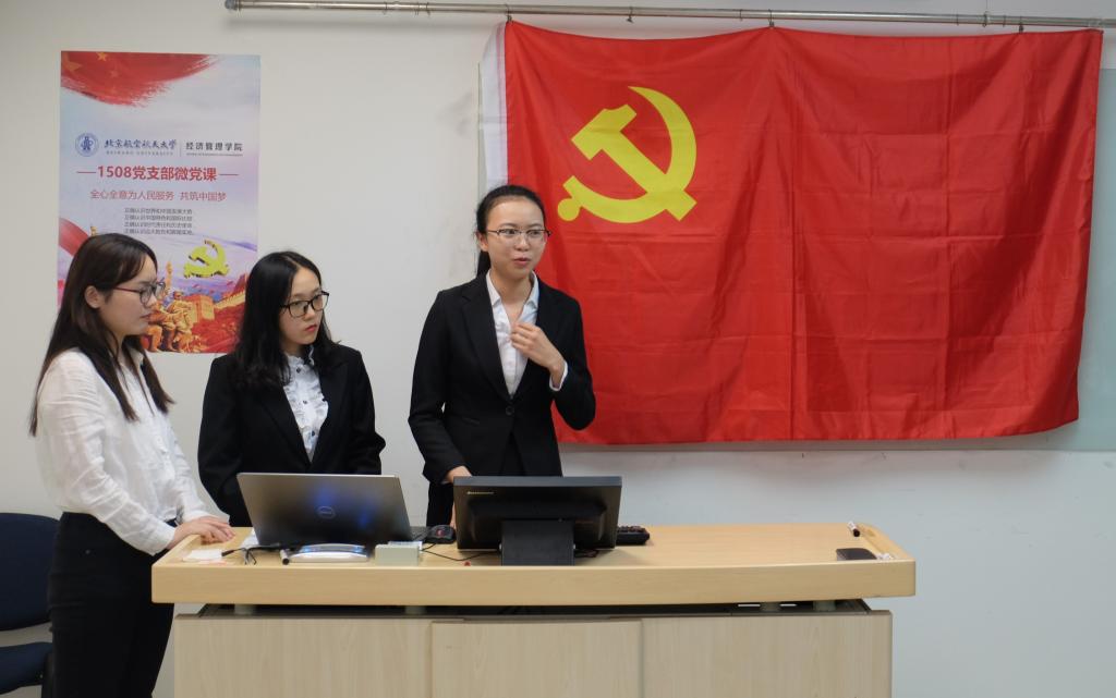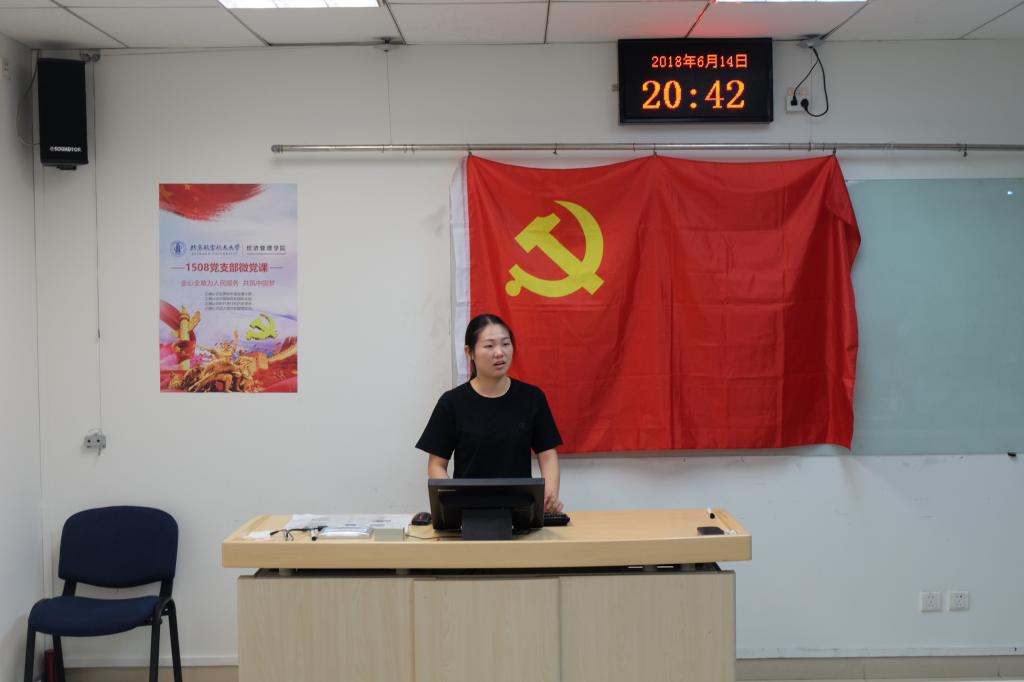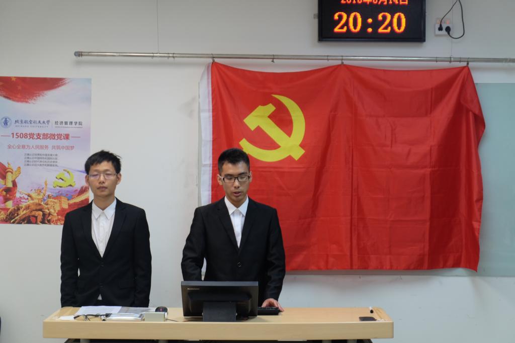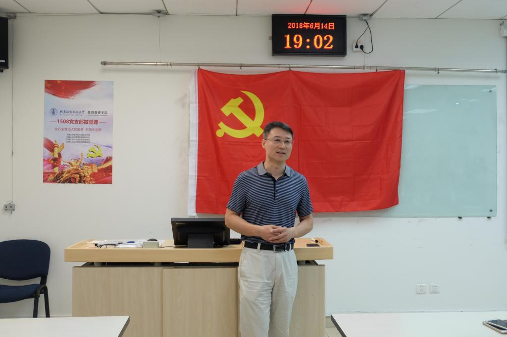 2018年6月14日晚19点,北航经济管理学院1508第一党支部、1508第二党支部以及高水平运动员党支部在新主楼A949成功组织专题党课。此次党课由王晨同志主持,学院副院长张人千教授、学院专职辅导员朱鹏宇老师以及部分积极分子参加了此次党课。