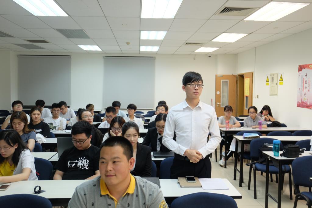 丁得彬和徐璐同志作为第一组主讲人拉开了此次党课的序幕,该学习小组的展示主题为正确认识时代责任和历史使命。丁得彬同志认为,当前中国青年的时代责任与历史使命就是把个人的追求与党和国家推进现代化建设的伟大事业结合起来。随后又从金融工作、金融市场、金融行业的独特性等角度,从所学专业出发阐述了自己眼中的使命与责任。徐璐同志通过“新时代对能源发展的要求”、“能源问题”以及“构建新时代能源体系”这三个模块,以自身为例阐述了学生党员的未来重担。在提问环节,主讲人也与观众展开了热烈的互动。最后,王晨同志总结该小组的展示,她认为上学期支部党课从宏观角度诠释了四个正确认识,该小组从专业背景、客观现实出发,在上学期的基础上深入研究并思考,为其他同志树立了很好的榜样。此外,青年学生们将是两个100年目标完成的见证者,王晨同志鼓励大家要结合现实深入思考,不断反省自身,早日成为国家的栋梁之材。
