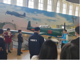 在博物馆志愿者的讲解中,党支部成员了解了“歼-10”、“鹞式战机”、“北京一号”等馆藏精粹。