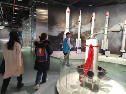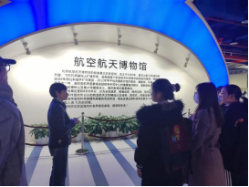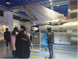 展馆二层的空天走廊如同一幅包括航空科技史与航天科技史的历史画卷,以空中悬吊的模型群组与地面展柜中的重点展品相互呼应,让党支部成员更深入的了解航空航天发展的科技历程。