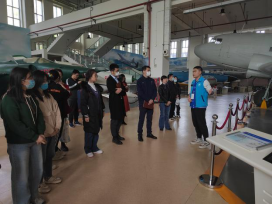 张海兰副校长带领大家参观了长空逐梦展厅,观看大量解剖的飞机机身、机翼、起落架、发动机及机载设备等珍贵展品。配合地面具有速度感的条纹状装饰,党支部成员们感受到了飞机在云层间穿梭的视觉冲击。