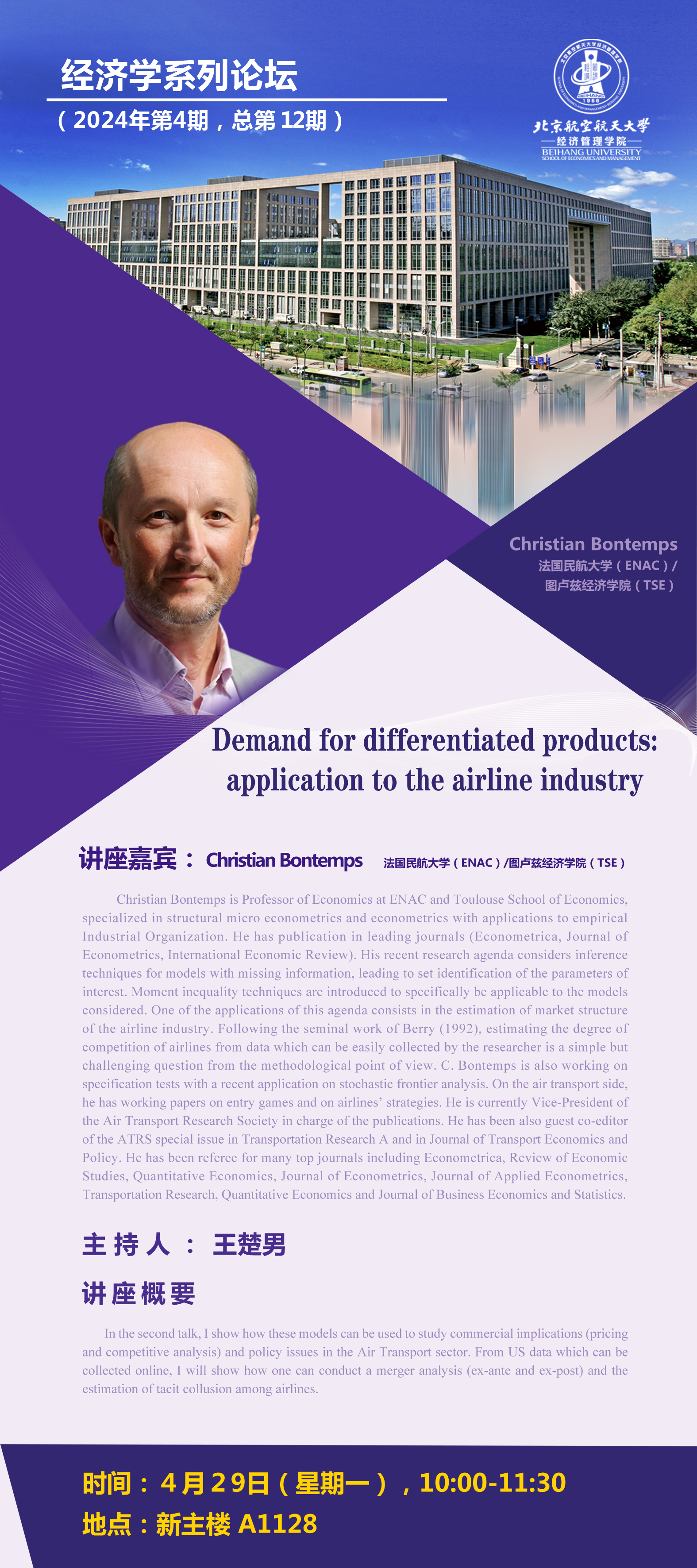 汇报人:   Christian Bontemps  法国民航大学(ENAC)/图卢兹经济学院(TSE)
